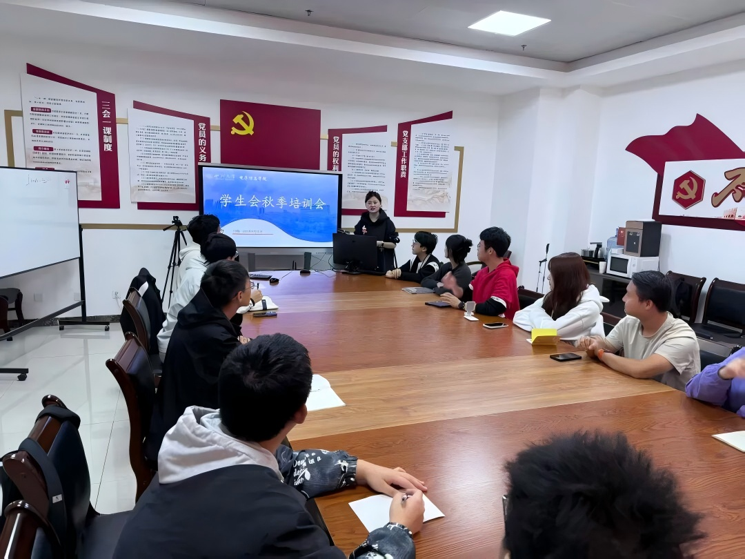 9月22日,学院学生会举办了2025—2026 学年秋季培训会。学生会各部门分管主席、负责人以及工作人员参加本次会议,会议由学生会秘书长白净主持。此次培训会旨在明确新学期工作方向,提升学生会成员的工作能力与服务意识,为后续工作的高效开展奠定坚实基础。