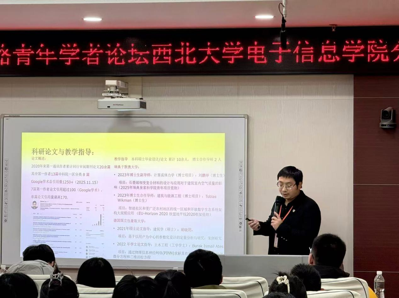 11月20日,陕西省第七届“丝绸之路青年学者论坛”西北大学电子信息学院分论坛学术交流活动,在物流信息大楼631报告厅成功举办。本次活动紧跟学校论坛开幕式系列安排,邀请了韩国高丽大学刘博凯教授、意大利米兰理工大学于越博士和重庆大学王磊助理研究员三位海内外青年学者参加,电子信息学院(人工智能学院)院系负责人和师生代表参会,现场学术氛围浓厚。